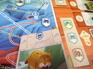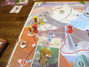 そしてもう一つの目的は、動物を観察してトークンを全て取ること。動物のいる場所に行って、その種類の動物のカードをプレイすることで動物を記録します。