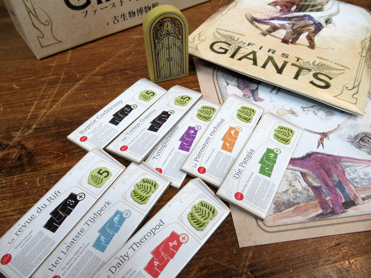 プロモセットの内容は、組み立て式の開始プレイヤーコマが立派な木製になり、追加のニューストークン(目標タイル)も含まれているものとなっています!