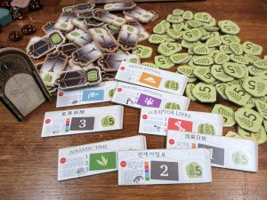 アートワークも美しく豪華なコンポーネントも相まって、恐竜が好きというテーマ重視の方も満足できると思いますし、トークン配置と回収のルールのおかげでままならないドラフト、リソースの管理、能力のコンボと能力を諦めて化石を展示するタイミング……箱は小さめですが、しっかりとしたプレイ感で、システム重視でかなり満足できる一作としてオススメいたします。