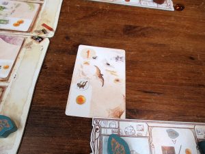 自分のマーカーがある場所にはそれ以上マーカーは置けません……つまり、次に来るカードは分かっているけど、そのカードが欲しい場合、置かれる発掘現場には自分のマーカーがあると取れなくなるわけです。