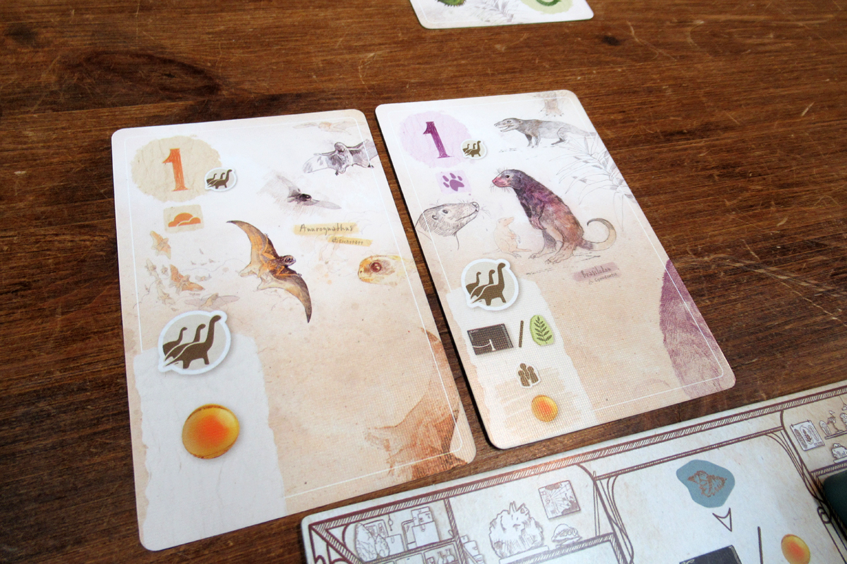 ゲームの目的は、自分の博物館にテーマに沿った化石を展示して得点を得ること。