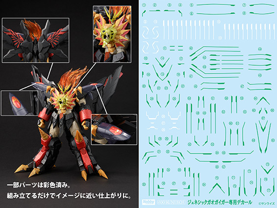 ●仕様/素材:ダイキャスト、ABS、PVC、PA、POM 付属品:ヘル・アンド・ヘブン用手首(2種)、ウィルナイフ、ウィルナイフ用刃パーツ(2種)、ジェネシックガオガイガー用フェイスパーツ(2種)、ボルティングドライバー、ボルティングドライバー用ボルト(3種)、スペシャル合体専用ジョイントパーツ、専用台座
