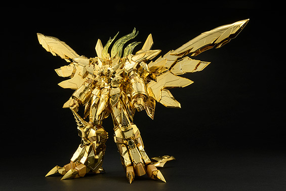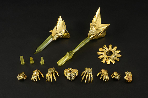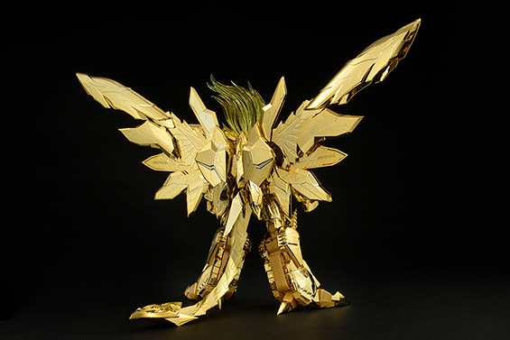 抜群のプロポーションや可動アクションギミックなどはそのままに、関節部を除いたほぼ全身の外装パーツにゴールドメッキを採用。 まばゆい煌めきを放つボディはまさに圧巻!